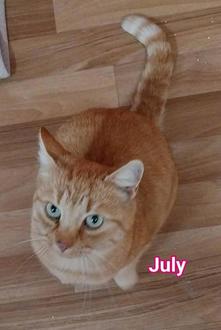 July lebte bisher als Freigängerin und möchte auch im neue Zuhause gern wieder Freigang, im verkehrsberuhigten Bereich haben.