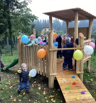 Am Freitag, den 20.10.2023 konnten wir unser neues Krippen-Spielgerät einweihen. Das Spielgerät konnte durch viele Spenden und unseren Träger finanziert werden.