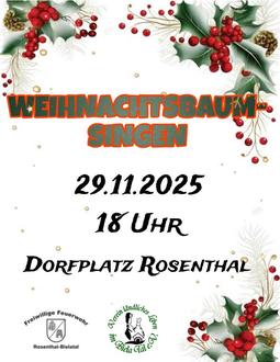 Am 29. November 2025 ab 18:00 Uhr lädt unser Heimatverein und unsere Freiwillige Feuerwehr herzlich zum traditionellen Weihnachtsbaumsingen auf dem Dorfplatz ein. Gemeinsam möchten wir die Weihnachtszeit und den 1. Advent feierlich einläuten und uns in gemütlicher Atmosphäre auf die schönste Zeit des Jahres einstimmen.