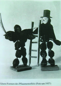 Figürliche Bastelarbeiten aus essbaren Materialien, wozu sich getrocknete (gedörrte) Früchte und besonders Hauspflaumen ja wunderbar eignen – entstanden im Zusammenhang mit Festen vermutlich schon vor sehr langer Zeit.