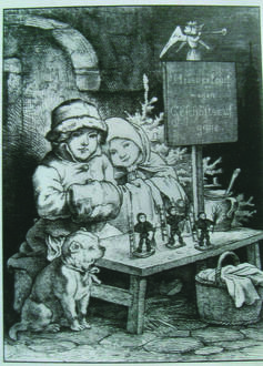 Noch bekannter ist eine Darstellung des bekannten Künstlers Prof. Ludwig Richter aus dem Jahr 1853, die den armen frierenden „Striezelkindern“ mit ihren „Pflaumentoffeln“ im Schatten der Kreuzkirche ein bleibendes „Denkmal“ setzt!