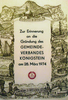 Am 28. März 1974 schlossen sich die Gemeinden Bielatal, Rosenthal, Cunnersdorf, Kurort Gohrisch, Kleinhennersdorf, Leupoldishain, Papstdorf, Pfaffendorf und die Stadt Königstein zum „Gemeindeverband Königstein“ zusammen – 1976 traten noch Naundorf Struppen und Thürmsdorf diesem Verband bei.