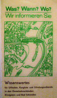 Folgende weitere Einrichtungen waren im Gemeindeverband vorhanden: Ein Krankenhaus in Königstein mit 34 Betten, eine Kinderkrippe mit 32 Plätzen, vier staatliche Arztpraxen, vier Zahnambulanzen, fünf Gemeindeschwesterstationen. Im Bereich der Volksbildung eine polytechnische Oberschule mit 25 Unterrichtsräumen, sechs Teil-POS mit 32 Unterrichtsräumen, acht Kindergärten mit 311 Plätzen und drei Turnhallen. Im Jahre 1985 wurde durch die Druckerei K. Liebner in Königstein ein Heftchen erstellt, in welchem Wissenswertes für Urlauber, Kurgäste und Erholungssuchende in den Gemeindeverbänden Königstein und Bad Schandau auf 15 Seiten zusammengefasst wurde. Unter anderem kulturelle Einrichtungen (Museen, Bibliotheken, Bühnen, Kinos), Tipps für einen ČSSR-Besuch, Dampfer- und Kirnitzschtalbahnfahrten, Tankstellen und Pannenhilfe, Freibäder, VP-Meldestellen., Postämter und Sparkassen, Gesundheitseinrichtungen und Gaststätten mit ihren Ruhetagen von Mai bis Oktober 1985. Darin waren noch über 100 gastronomische Einrichtungen verzeichnet!