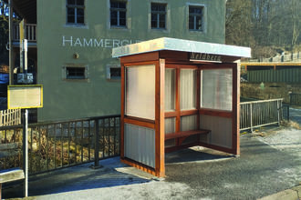 Und so machten sich Rico Thieme und Jan Schreiber ans Werk und zimmerten für uns ein wunderschönes Wartehäuschen.