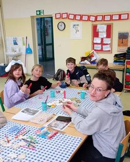 Frau Jahn und Frau Rochelt waren zwei unserer engagierten Eltern und Großeltern am Basteltag