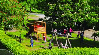 Die Schaukel wurde umgesetzt, so dass schaukelnde Kinder nicht in der Hecke landen