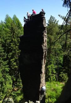 31. Mai 2023: Der 80-jährige Günter Priebst aus Rosenthal ließ es sich an seinem Geburtstag nicht nehmen, mit seinen Bergfreunden den Gipfel des schwierigen Arnsteiner Turmes im Bielatal zu erklimmen.