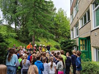 Plötzlich wurde es laut! Die Feuerwehr kam mit zwei Einsatzfahrzeugen und Signalton aus ihrem Stützpunkt in Rosenthal zu uns auf den Schulhof gefahren. Die Kameraden der Freiwilligen Feuerwehr Rosenthal-Bielatal starteten ihren Einsatz und prüften, woher der Rauch kam. Die Kinder beobachteten das alles. Was war nur geschehen?