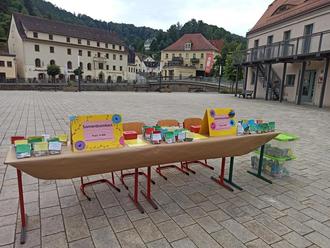 Wir, die Klasse 8a der Oberschule Königstein, bastelten im Rahmen der Projektwoche „Seedbombs“. Darunter versteht man kleine Bälle aus Erde, Mineralien und einer Mischung aus Samen. Diese legt man auf den Boden (der Ball verteilt sich selbstständig und die Pflanzen gedeihen ohne gießen. Wir verkauften die Seedbombs auf dem Stadtplatz (für jeweils 0,50 €).