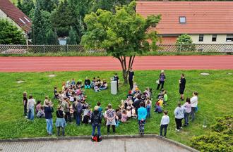 Zur Mittagszeit wollten sich alle Klassen wieder auf der großen Wiese im Schulgelände treffen und den anderen Klassen von ihren Erlebnissen berichten. Es stellte sich heraus, dass die Wanderzeit schneller verging als gedacht – so dass einige Klassen Mühe hatten, zur vereinbarten Zeit wieder im Schulgelände zu sein. Die Freude war groß, als auch die letzte Klasse eintraf!