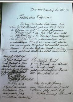 Politisches Zeugnis für Josef Ritschel und Gewerbegenehmigung