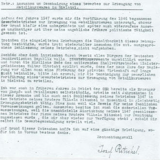 Schon 1946 erhielt er eine Erlaubnis zur Produktion von Kleinmetallerzeugnissen – 1947 wurde ihm diese Genehmigung auf Grund konstruierter Gründe wieder entzogen.
