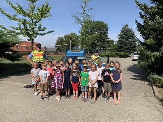 Schon in der ersten Schulwoche hatte die Klasse 1 der Grundschule Rosenthal-Bielatal Besuch. Unsere Bürgerpolizistin, Frau Polizeihauptmeisterin Ludwig, führte gemeinsam mit ihrem Kollegen, Polizeihauptmeister Grund, für die neuen Schulkinder ein Verkehrstraining durch.