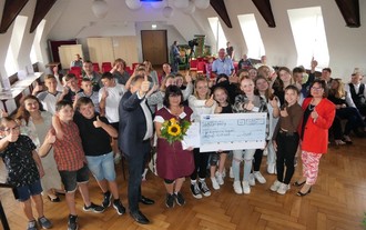 Das Warten hat sich gelohnt! Sie gewannen, und dass beim ersten Mal dieser Art von Wettbewerb! So kam es dazu, dass dieser hohe Besuch in unsere Schule kam. In der Aula befanden sich nicht nur die 7b und der hohe Besuch, sondern auch die Eltern waren eingeladen. Nach einer kurzen Eröffnungsrede von Frau Bretschneider stellten 2 Mädchen der 7. Klasse ihr Konzept vom Zukunftstag vor. Auch der Staatssekretär kam zu Wort, bevor eine 7. Klässlerin zwei Stücke auf dem Akkordeon darbot. Frau Danek überreichte das Preisgeld, das Frau Rosenthal entgegennahm. Es wurden noch ein paar Interviews geführt, bevor die Gäste verabschiedet wurden.
