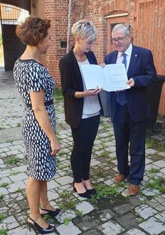 Am 16.08.2023 übergab Herr Dr. Jürgen Ude, Staatssekretär der Staatskanzlei und des Ministeriums für Kultur Sachsen-Anhalt, Stabsstelle für Großinvestitionen, Strukturwandel, persönlich den Zuwendungsbescheid für das Projekt „Entwicklung einer Industriebrache zu einem lebendigen städtischen Zentrum“ an die Stadt Raguhn-Jeßnitz.