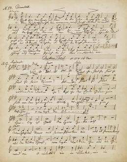Die Abbildung zeigt einen Auszug aus Loewes Manuskript, o. Dat. [um 1848], aus dem Oratorium "Hiob".