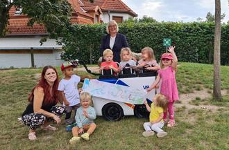 Am 18.09.2023 war es so weit und Frau Wieland von der Volksbank Halle Saale eG besuchte uns. Doch sie kam nicht allein, im Gepäck hatte sie ein nagelneues VRmobil der VR-Gewinnspargemeinschaft e.V.