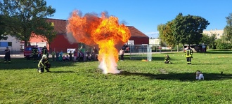 Ein aufregender Moment war die Vorführung eines Fettbrandes. Mit einer riesengroßen Flamme wurde eindrucksvoll gezeigt, wie gefährlich ein Fettbrand sein kann und wie man sich in so einer Situation richtig verhält.