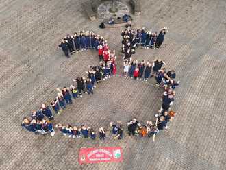 Den Abschluss bildete eine Luftaufnahme aller Jugendlichen auf dem Festplatz und so ließen wir diesen Vormittag ausklingen.