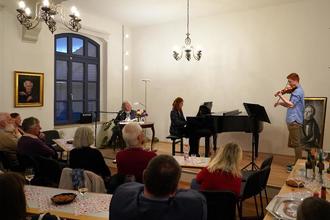 Das Veranstaltungsjahr 2024 klang am 17. November mit einer musikalischen Lesung im bis auf den letzten Platz besetzten Kammermusiksaal des Loewe-Museums aus. Unser Präsidiumsmitglied Frieder Badstübner las aus Loewes Selbstbiografie sehr kurzweilig und vergnüglich die Abschnitte zu Loewes Kindheits- und Jugendtagen in Löbejün, Köthen und Halle. Die musikalische Umrahmung gestalteten die Geschwister Sophie (Klavier und Gesang) und Clemens Porsche (Violine) mit Loewe-Kompositionen.