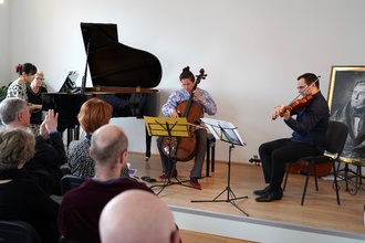 Und schließlich der Höhepunkt des Konzertes: zwei Sätze aus dem Grand Trio für Violine, Cello und Klavier von Carl Loewe – virtuos interpretiert von Albert Kutz (Violine), Ilka Grießer (Cello) und Miho Ohki (Klavier). Carl Loewe hätte wohl Freudentränen in den Augen gehabt, wenn er an seinem Geburtsort dabei gewesen wäre und erlebt hätte, wie sein Erbe an dieser Stätte gepflegt wird.