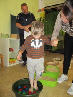 Der Bewegungsbereich überraschte mit einem Indoor-Klettergerüst sowie einem Fühlpfad aus Naturmaterialien, welchen die kleinen Entdecker mit Barfußbeinen erkunden konnten. Des Weiteren gestalteten die Kinder kleine Kunstwerke aus Naturmaterialien.