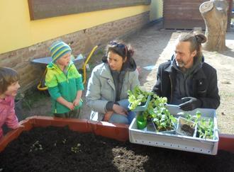 Ganz behutsam setzten wir die kleinen Pflänzchen in unser Beet. Zum Schluss noch gut angießen und nun können sie wachsen. Jeden Tag schauen wir in unser Beet und kontrollieren, ob die Pflanzen Wasser brauchen und gut wachsen. Denn wir wollen später leckeres Gemüse ernten und natürlich das Gemüse auch verkosten.
