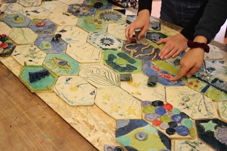Anschließend wurde die Keramik farbig bemalt und zu einem großen Relief zusammengesetzt.