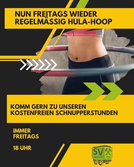 Ab 18 Uhr heißt es: Reifen kreisen lassen! Unter der erfahrenen Leitung von Sandra findet ab sofort jeden Freitag 18 Uhr ein regelmäßiges Hula-Hoop-Training statt.