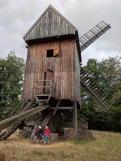 Nach einer kurzen Stärkung und allen beantworteten Fragen, ging es für uns weiter Richtung Krosigk. Hierbei kamen wir dem Petersberg schon sehr nah. Wir kamen an einem Sonnenblumenfeld vorbei und nutzen es zur kurzen Pause als Labyrinth. Was für ein Spaß. An der Bockwindmühle in Krosigk angekommen, wurden wir von Herrn Sommer vom Windmühlenverein herzlichst empfangen. Mit Herrn Sommer zusammen bekamen wir einen Rundgang und durften sogar ins Innere der alten Windmühle. Dafür geht nochmals ein großes Dankeschön an Herrn Sommer und den Windmühlenverein. Was für ein schöner, spannender und langer Wandertag.