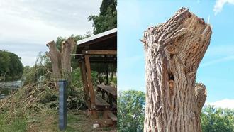 Wir als Eigentümer des Geländes waren verpflichtet, die Gefahr schnellstmöglich zu beseitigen. In der Hoffnung auf einen erneuten Austrieb haben wir uns für eine starke Kürzung anstatt für eine komplette Fällung entschieden.