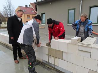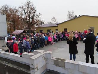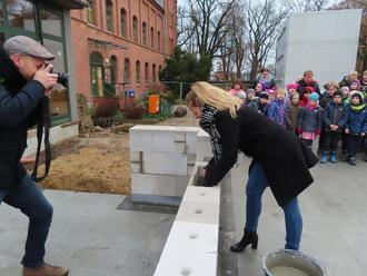 Bei einem Grad und feuchter Kälte fand die Grundsteinlegung für den Ersatzneubau Hort Brehna statt.