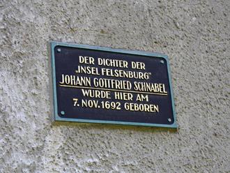 Schnabels berühmtestes Werk ist der Roman in vier Bänden, der von der Insel Felsenburg erzählt. Die Insel Felsenburg soll sich im südatlantischen Ozean befinden. Sie gibt es aber nicht wirklich, sie ist eine Erfindung des Autors. Sie ist eine Utopie! Der vollständige Titel dieses Romans über diese Insel lautet „Wunderliche Fata einiger See-Fahrer“. Er wurde in den Jahren 1731-1743 veröffentlicht. Für einige heutige Leser mag er möglicherweise nicht zeitgemäß erscheinen. Aber er ist kulturhistorisch sehr interessant und literarisch raffiniert gemacht, weshalb er heute Gegenstand literaturwissenschaftlicher Forschung ist und wir, die Mitglieder des Fördervereins Johann Gottfried Schnabel e.V., uns darum bemühen, dass er nicht vergessen wird.