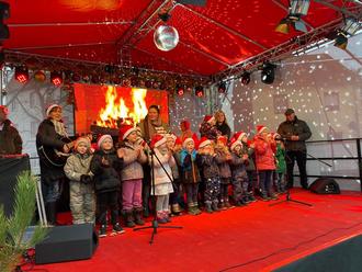 Die Kinder vom Pfingstanger eröffneten traditionell mit ihrem Gesang und Gedicht den Weihnachtsmarkt 2024.