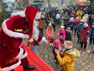 Der Weihnachtsmann bei der Rückgabe der gefüllten Stiefel.