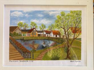 sowie Das ehemalige Gemeindezentrum – zum Zeitpunkt des Jahres 2012 und Die Ramsiner Mühle von 1920 (Beide ohne Abbildungen) – dieses Bild habe ich vor einigen Jahren auf Initiative des Ortschronisten Winfried Fega und mit seiner Unterstützung gemalt