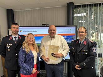 Nach einer Zeit der kommissarischen Leitung freut sich die Freiwillige Feuerwehr Brehna, Andreas Wolkenhaar wieder offiziell als Ortswehrleiter begrüßen zu dürfen. Bürgermeisterin Steffi Syska (parteilos) überreichte gemeinsam mit Stadtwehrleiter Marcel Rechner und dessen Stellvertreter Marvin Schubert im Rathaus Sandersdorf die Berufungsurkunde.