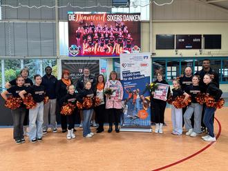 Die Übergabe der symbolischen Schecks fand am Sportzentrum statt. Die Scheck übergaben radio SAW-Moderator Warren Green gemeinsam mit Kathleen Gorgas und Annett Sieg-Spengler von der Volksbank Köthen-Bitterfeld vor. Die Gewinnerin Sandra Dues-Drehmel und Cindy Exner (Co-Trainerin) bekamen die symbolischen Gewinnerschecks, Mike Exner (Co-Trainer) und einige Cheerleader und Spieler des Basketballvereins freuten sich mit über den Gewinn und die tolle Geste von Sandra.