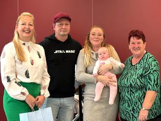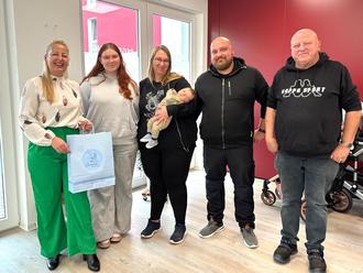 Bürgermeisterin Steffi Syska gratulierte zur Geburt von Mattheo, geboren am 4. Mai. Papa Patrick hielt seinen kleinen, schick gekleideten Sohn stolz im Arm, während Mama Jennifer und die großen Schwestern Stella und Fiona strahlten.