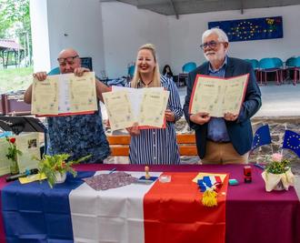 Die Bürgermeister Bernd HUBERT aus Brehna, Laurent BAUDE aus Semoy und Frau Steffi SYSKA aus Sandersdorf-Brehna haben in Anwesenheit von Frau MEHNERT, Europaabgeordnete aus Sachsen-Anhalt, Herrn Lars-Jörn ZIMMER, Abgeordneter aus Sachsen-Anhalt, und zahlreichen Teilnehmern offiziell ihre Zusage bekräftigt, das Partnerschaftskomitee aktiv zu unterstützen.