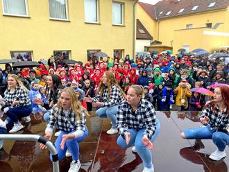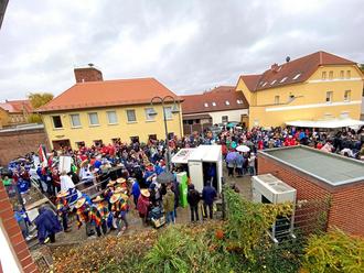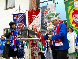 Ein Sketch jagte den nächsten bevor endlich die gesamte Karnevalsbande aus der Teichstraße mit musikalischer Unterstützung vom Musikverein Sandersdorf kam. Mit Stolz und Vorfreude wurden die Fahnen, Kostüme und auch das Karnevalslächeln getragen!