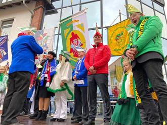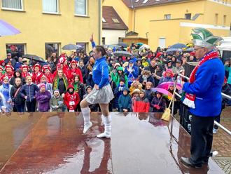 Der 11.11. im Jahr 2023 fiel auf einen Samstag. Somit haben es sich viele Närrinnen und Narren nicht nehmen lassen, zur Schlüsselübergabe am Samstag zum Rathaus zu kommen. Das trübe Wetter und beginnender Regen haben zwar die ein oder andere Laune getrübt, dennoch siegte die Freude über die beginnende Faschingszeit.