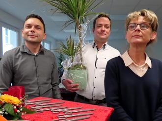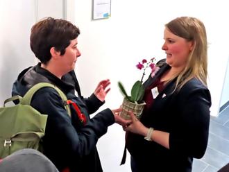 Sabine Radmacher vom Verein ... war ebenfalls vor Ort, um ein kleines Geschenk zu überbringen.