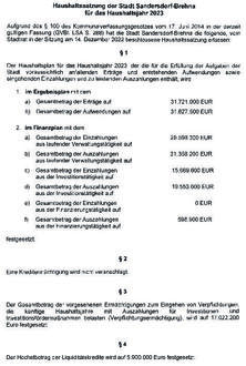 Die Haushaltssatzung wurde bereits am 23. Januar 2023 über die Website der Stadt Sandersdorf-Brehna bekannt gemacht.