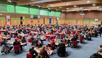 266 Würfelfreunde strömten am 19. Januar 2025 in die Mehrzweckhalle Sandersdorf, um den 2. Landesmeister von Sachsen-Anhalt auszuspielen. Die meisten Teilnehmer stammten natürlich aus unserem Bundesland, aber wir konnten auch Mitspieler aus 5 anderen Bundesländern begrüßen. Besonders viele Mitspieler waren aus Sachsen angereist. Nach Ende der Anmeldezeit mussten wir noch 2 Starter gewinnen, damit an allen Tischen 4 Spieler sitzen konnten. So kam es, dass wir auch unseren SG Union Sandersdorf Präsidenten Uwe Störzner mit in das Teilnehmerfeld „schupsen“ mussten. Völlig unvorbereitet, war er sofort mit 104% im Spiel und absolvierte die Vorrunde mit 3 Siegen und einem 2. Platz, also 18 Punkten, bravourös. Um zu den besten 16 zu gehören, die im Halbfinale starten durften, waren diesmal 16 Punkte notwendig. An 4 Tischen wurden dann die 4 Finalisten ermittelt. Besonders bemerkenswert war, dass in diesem Jahr 2 Kinder und 2 Spieler Ü60 (verzeiht mir meine Indiskretion) am Finaltisch standen. Hier sah Frank Hoffmann, ein ehemaliger Holzweißiger, wie der sichere Sieger aus, aber seine 4. Figur wurde kurz vor dem Finish rausgeworfen, sodass die 9jährige Nora als Siegerin das Spielbrett verließ. Der jüngste Finalist Marius aus Sachsen erspielte sich einen tollen 3. Platz. Union Präsident Uwe Störzner ging dann im Finale wohl ein wenig die Puste aus, aber auch sein 4. Platz konnte sich sehen lassen.