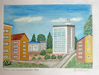 "Ring der Chemiarbeiter mit Blick auf das Hochhaus" von Horst Kunze