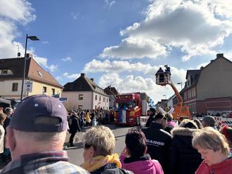 Mit 25 bunt geschmückten Wagen zog der farbenfrohe Festzug vom Sportzentrum über den Kreisel – wo Heike und Hubi erneut mit einer mitreißenden Moderation für Stimmung sorgten – weiter über die Straße der Neuen Zeit bis hin zum Rathaus. Dort präsentierten die Karnevalisten vor den Augen von Bürgermeisterin Steffi Syska und Ortsbürgermeister Andy Grabner ihre mitreißenden Showtänze und grüßten das närrische Publikum.