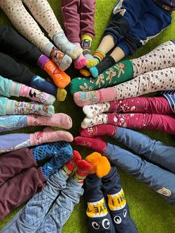 Die Schüler vom Hort Sandersdorf haben auch an bunte Socken gedacht!