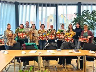 Zur Unterstützung der pädagogischen Arbeit haben alle Einrichtungsleiter*innen am 09.03.2023 eine „Englishbox“ überreicht bekommen mit Büchern, CDs und anderen Lehrmaterialien. So können nun auch alle Sinne der Kinder durch Musik, Spiele und Bildmaterialen auf die englische Sprache sensibilisiert werden. Highlight jeder Box sind die dazugehörigen Handpuppen, welche je nach Bedarf und Alter der Kinder von den Einrichtungen ausgesucht wurden. Egal ob wuschelige Hunde oder bezaubernde Schildkröten, sie werden garantiert für eine Menge Sprachfreude innerhalb der Kitas und Horte sorgen.