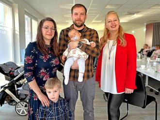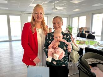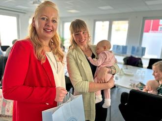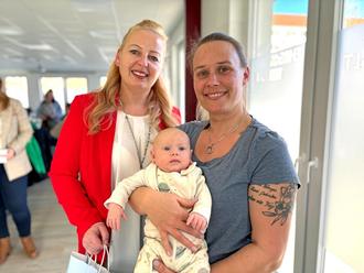 Bürgermeisterin Steffi Syska begrüßt alle anwesenden Neugeborenen mit ihren Eltern.